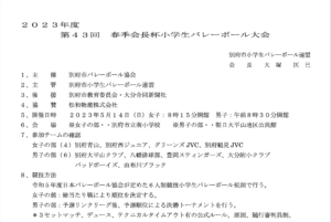 2024年2月23日(金) に、別府市朝日大平山地区公民館および別府市立南小学校で行われました、「第37回湯の町カップ小学生バレーボール大会」の結果を公開いたしますので、下記リンクよりご覧ください。 参加されたチームの皆 […]